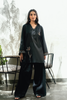 This ensemble features a short kurta with intricate embroidery detailing, paired with a farshi shalwar, elevating the overall outfit.